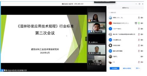 中國散協(xié)團(tuán)體標(biāo)準(zhǔn)《濕拌砂漿應(yīng)用技術(shù)規(guī)程》第二次標(biāo)準(zhǔn)編制工作會議于2020年5月22日上午9:30-11:30以網(wǎng)絡(luò)會議的形式召開。中國散裝水泥推廣發(fā)展協(xié)會秘書長、建筑材料工業(yè)技術(shù)情報研究所混凝土發(fā)展中心主任孫繼成博士、中國散裝水泥推廣發(fā)展協(xié)會專家委員計海霞高工、建筑材料工業(yè)技術(shù)情報研究所標(biāo)準(zhǔn)編制工作組楊莉、中建西部建設(shè)北方有限公司技術(shù)中心經(jīng)理張凱峰、成都精準(zhǔn)混凝土有限公司經(jīng)理馬占民、山東弗爾曼新材料集團(tuán)有限公司經(jīng)理肖維錄、主任薛俊書、廣東浪淘砂新型材料有限公司研發(fā)中心主任曹小榮、黃山精強(qiáng)建材股份有限公司副總經(jīng)理程楷、四川同舟化工有限公司技術(shù)片區(qū)負(fù)責(zé)人鄧奎、中信國安建工集團(tuán)有限公司總工張學(xué)華、麗水市處州混凝土有限公司總經(jīng)理楊磊、實驗室主任金滿昌;株洲市中建新材料有限公司總經(jīng)理陳新、青島國基商砼有限公司郇建、昆明匯森混凝土有限公司杜顯茂等41名代表參加了會議。會議由建筑材料工業(yè)技術(shù)情報研究所楊莉主持。首先主編單位中國散裝水泥推廣發(fā)展協(xié)會秘書長、建筑材料工業(yè)技術(shù)情報研究所孫繼成博士介紹了標(biāo)準(zhǔn)編制要求以及編制工作進(jìn)度計劃。隨后,中國散裝水泥推廣發(fā)展協(xié)會專家委員、主編單位標(biāo)準(zhǔn)編制負(fù)責(zé)人計海霞高工就濕拌砂漿行業(yè)現(xiàn)狀、標(biāo)準(zhǔn)中創(chuàng)新點和關(guān)鍵點進(jìn)行介紹。標(biāo)準(zhǔn)編制組建筑材料工業(yè)技術(shù)情報研究所楊莉詳細(xì)介紹了標(biāo)準(zhǔn)文本及條款編制說明,并組織參會代就凝結(jié)時間、保塑時間、14拉伸粘結(jié)強(qiáng)度等關(guān)鍵技術(shù)參數(shù)進(jìn)行交流討論,廣泛征集參編單位意見。該會議的召開對標(biāo)準(zhǔn)編制工作起到了大的推進(jìn)作用。標(biāo)準(zhǔn)編制負(fù)責(zé)人計海霞高工標(biāo)準(zhǔn)編制組工程師楊莉